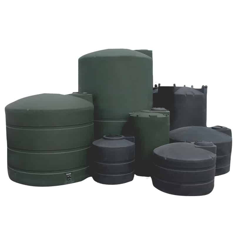 5000 Gallon Low Vertical (straight-wall) Water Storage Tank. Tanks are available in Black, Dark Green and Sand (Tan) in sizes up to 3000 gallons, and Black and Dark Green in sizes above 3000 gallons.